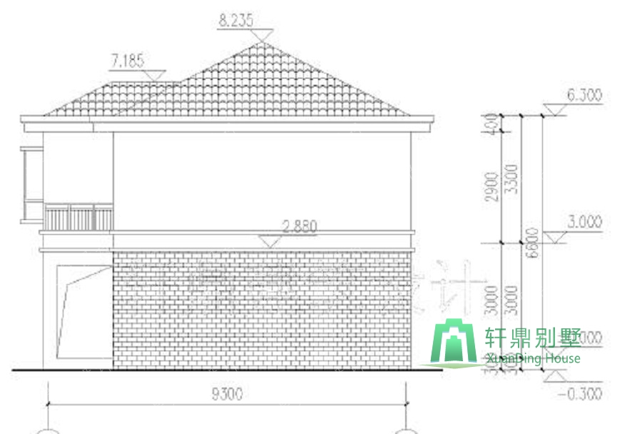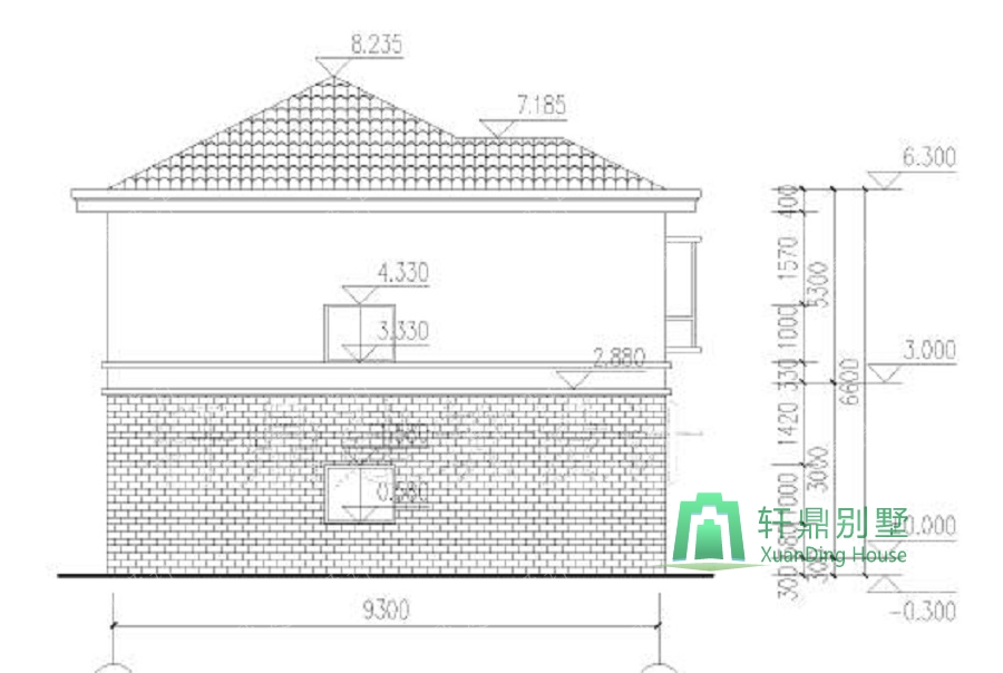 楼层层高:一层层高3.0米,二层层高3.3米。