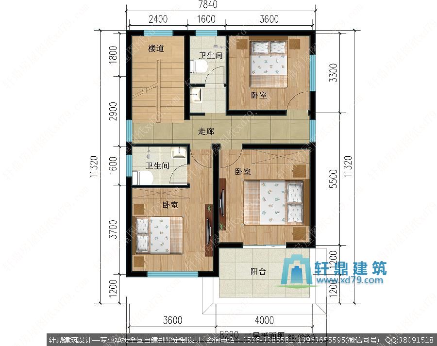 二层:卧室、卧室、卧室、卫生间、卫生间