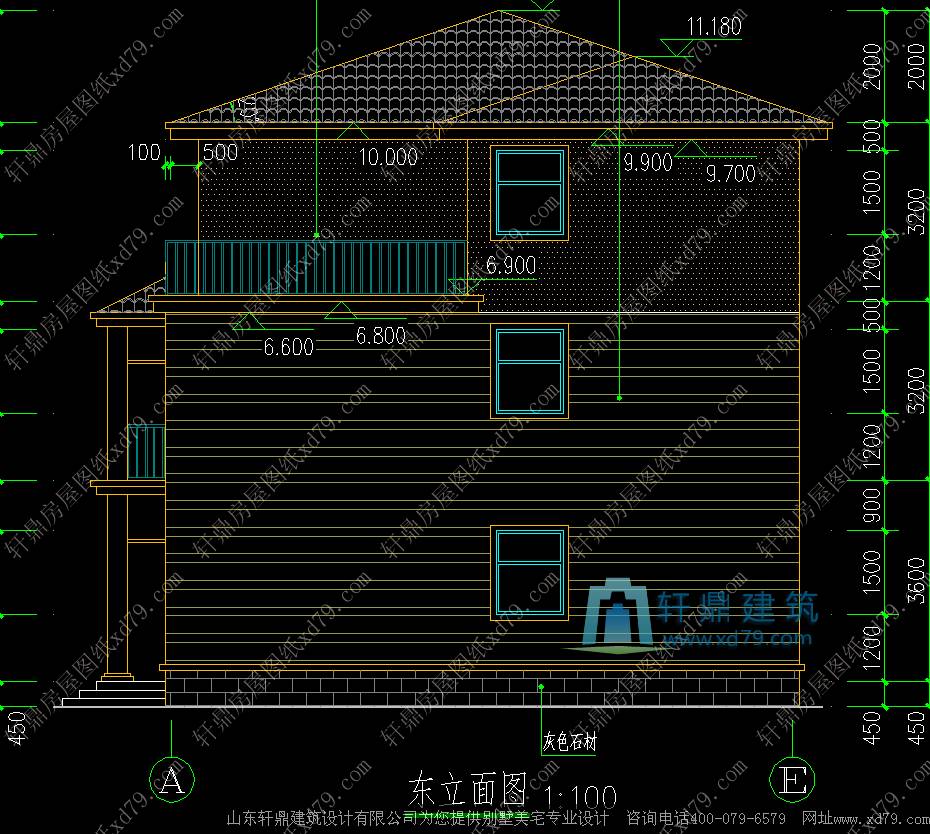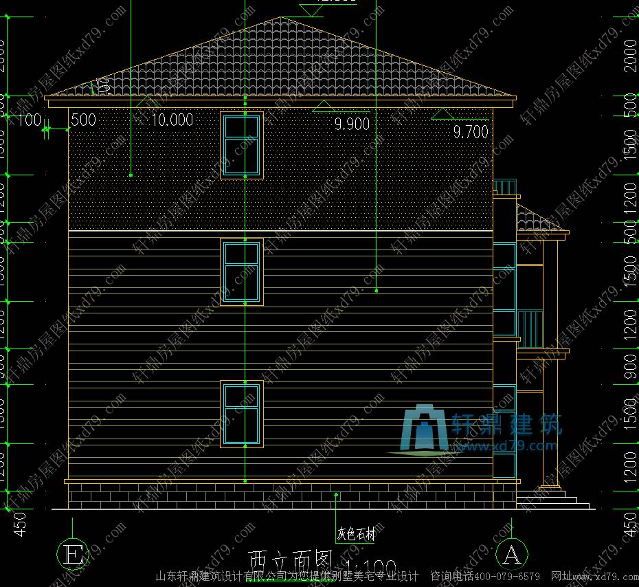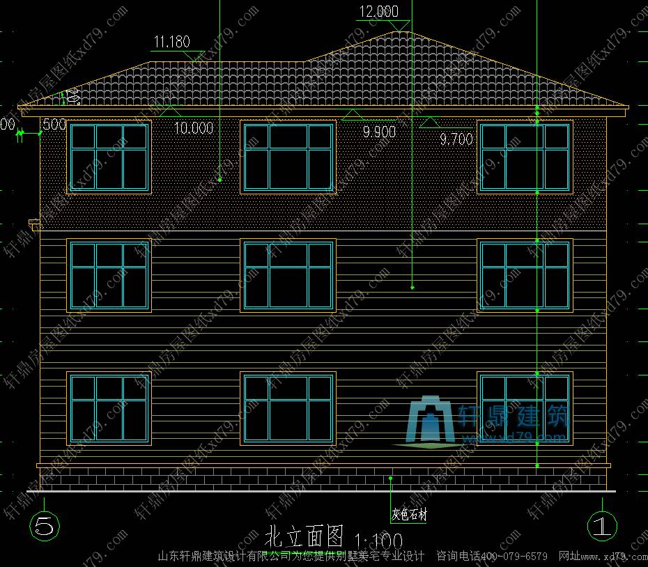 | 建 筑 图: | 建筑设计说明、工程做法、一层平面图、二层平面图、三层平面图、屋顶平面图、南立面图、北立面图、东立面图、西立面图、1-1剖面图、门楼大样、楼梯平面图、楼梯1-1剖面图、结点大样 |