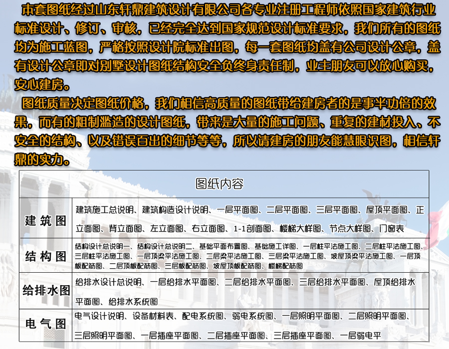 若是您喜欢本套风格的设计图,但是图纸尺寸和房间功能不符合实际建房要求,可以联系我们的设计师,按照此套设计图外观为您重新量身定制您自己的房屋图纸;或者没有找到合适的风格的设计图,也可按照您的要求来进行按需定制设计。 如有需要请点击 量身定制设计 或是直接联系轩鼎建筑主创设计师刘工, 电话400-079-6579 QQ:38091518