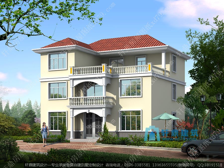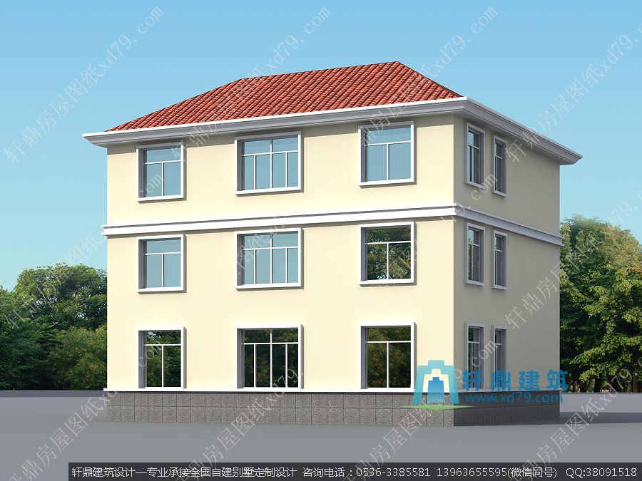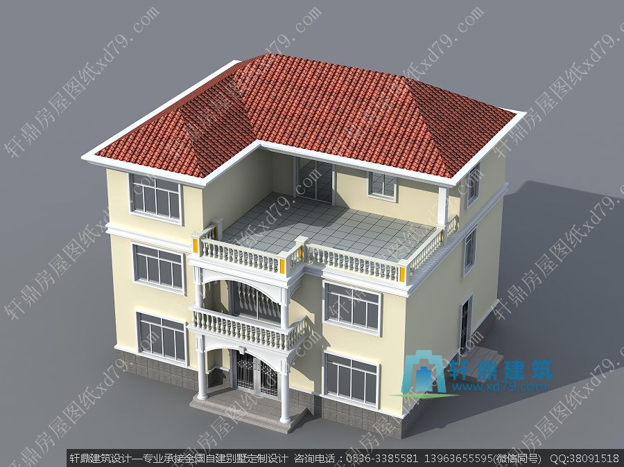 本户型为农村房屋设计图,含外观效果图,本方案户型好,三楼包含大露台,以居住舒适为主,效果图配色协调,整体美观大气。