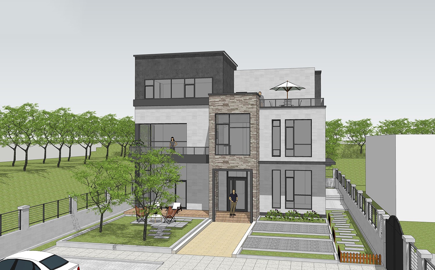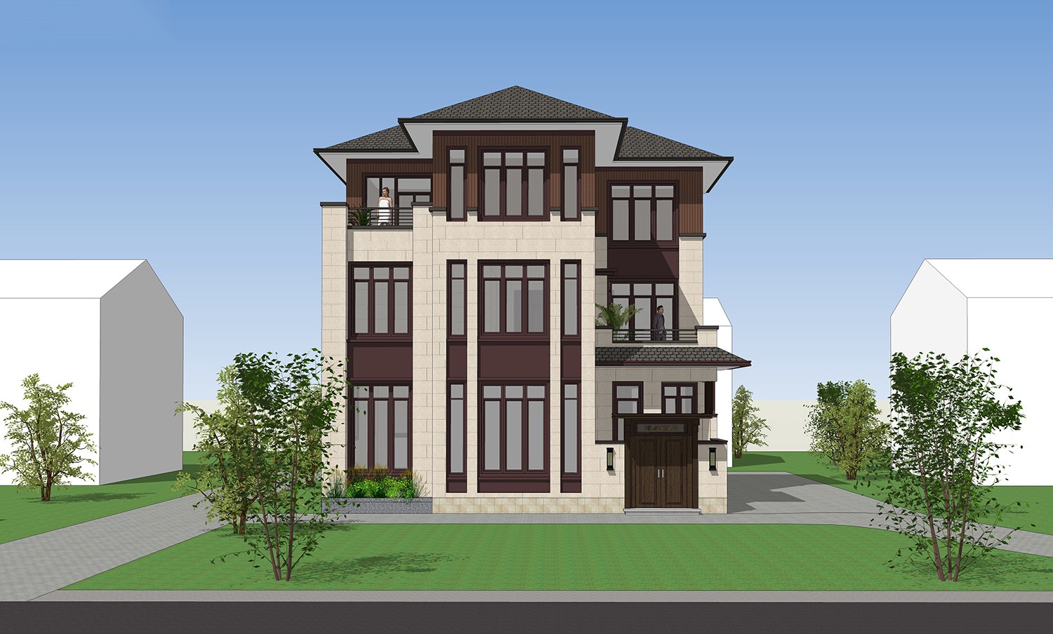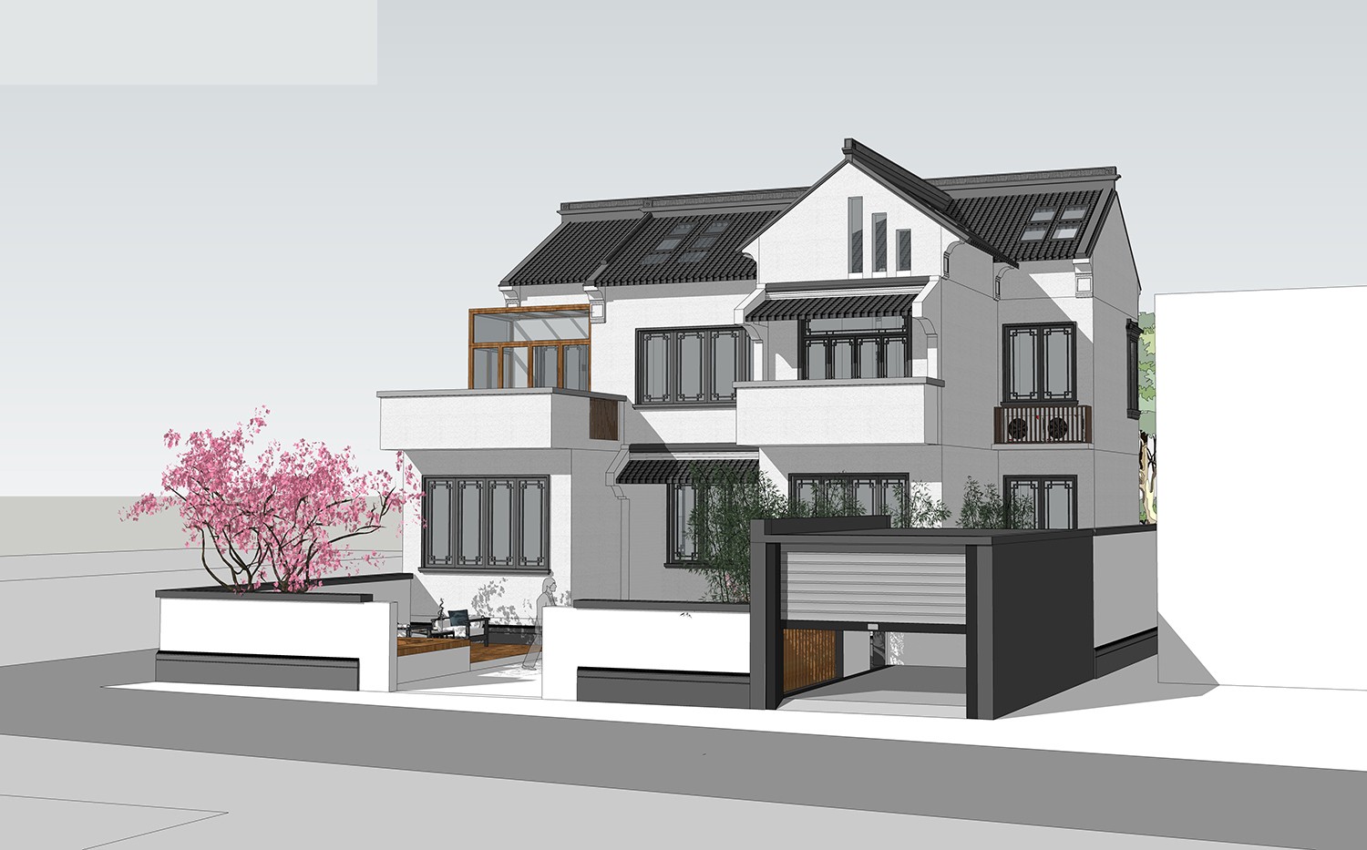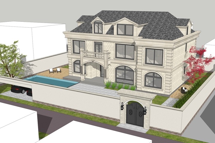 农村很适合建新中式现代田园自建别墅,这样的自建房以现代风格为基调,又融入新中式韵味和欧式别墅细节,大