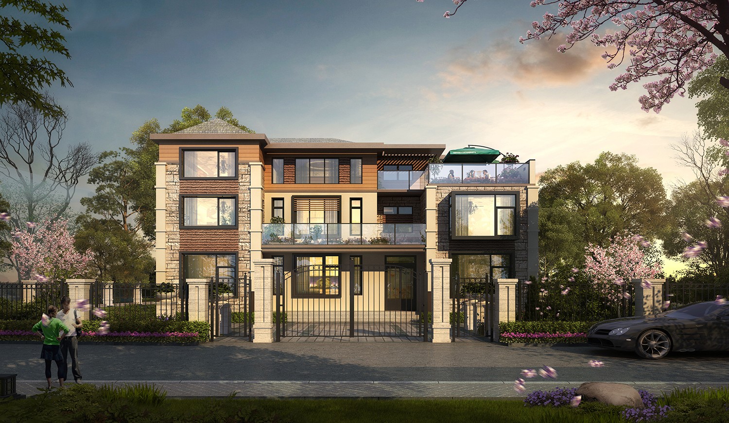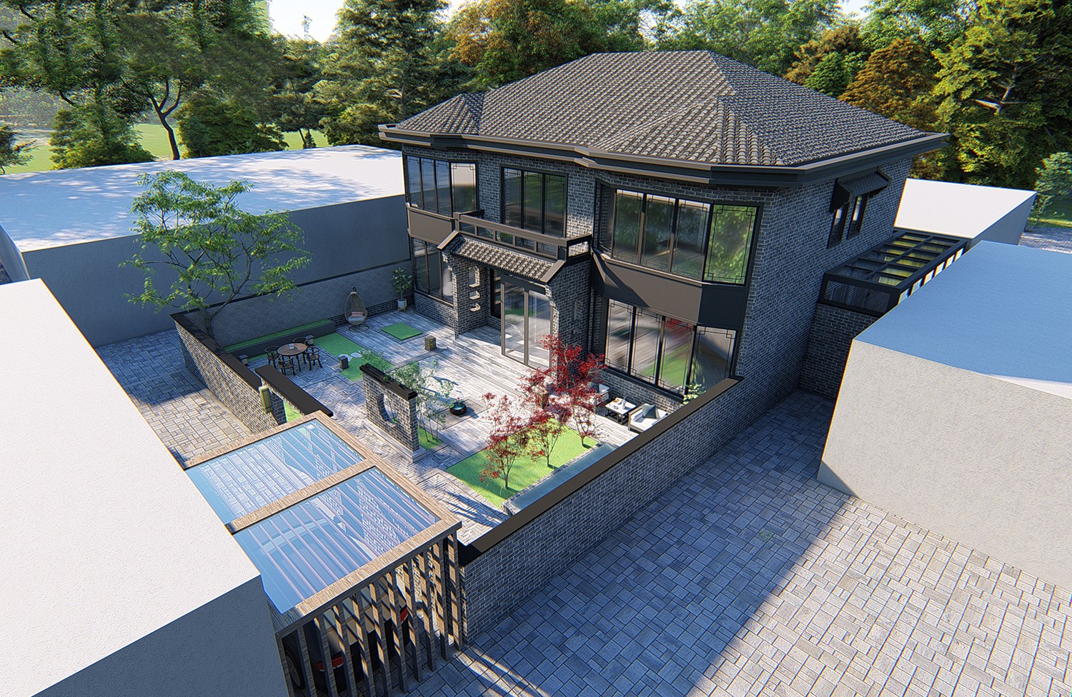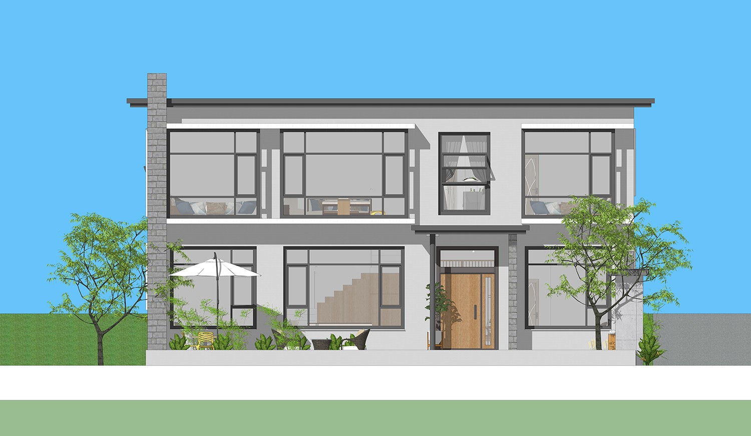 农村很适合建新中式现代田园自建别墅,这样的自建房以现代风格为基调,又融入新中式韵味和欧式别墅细节,大