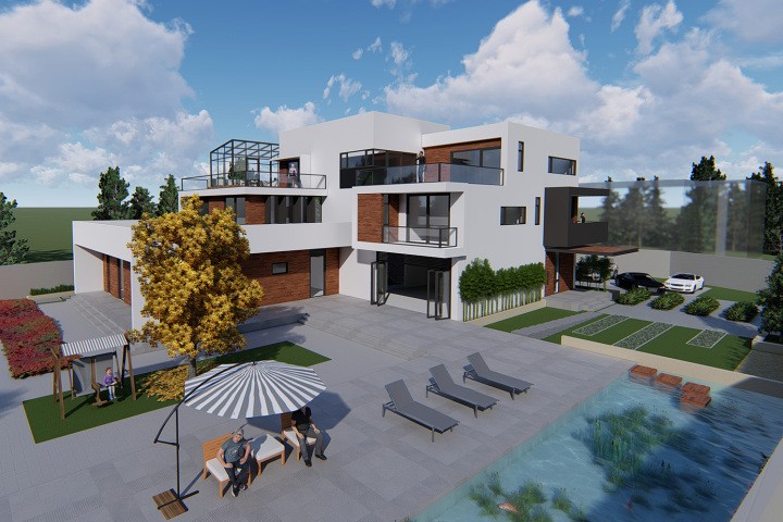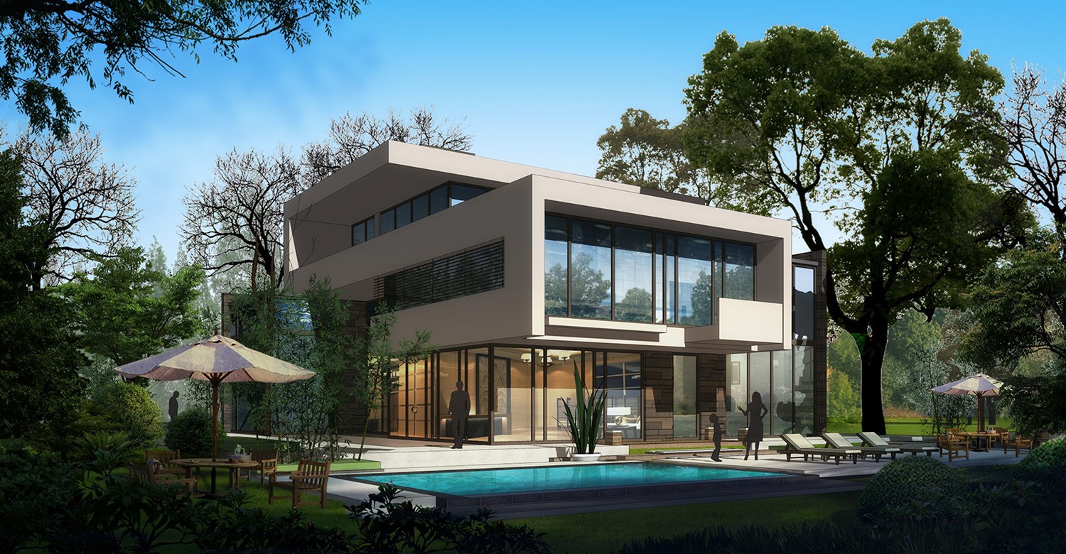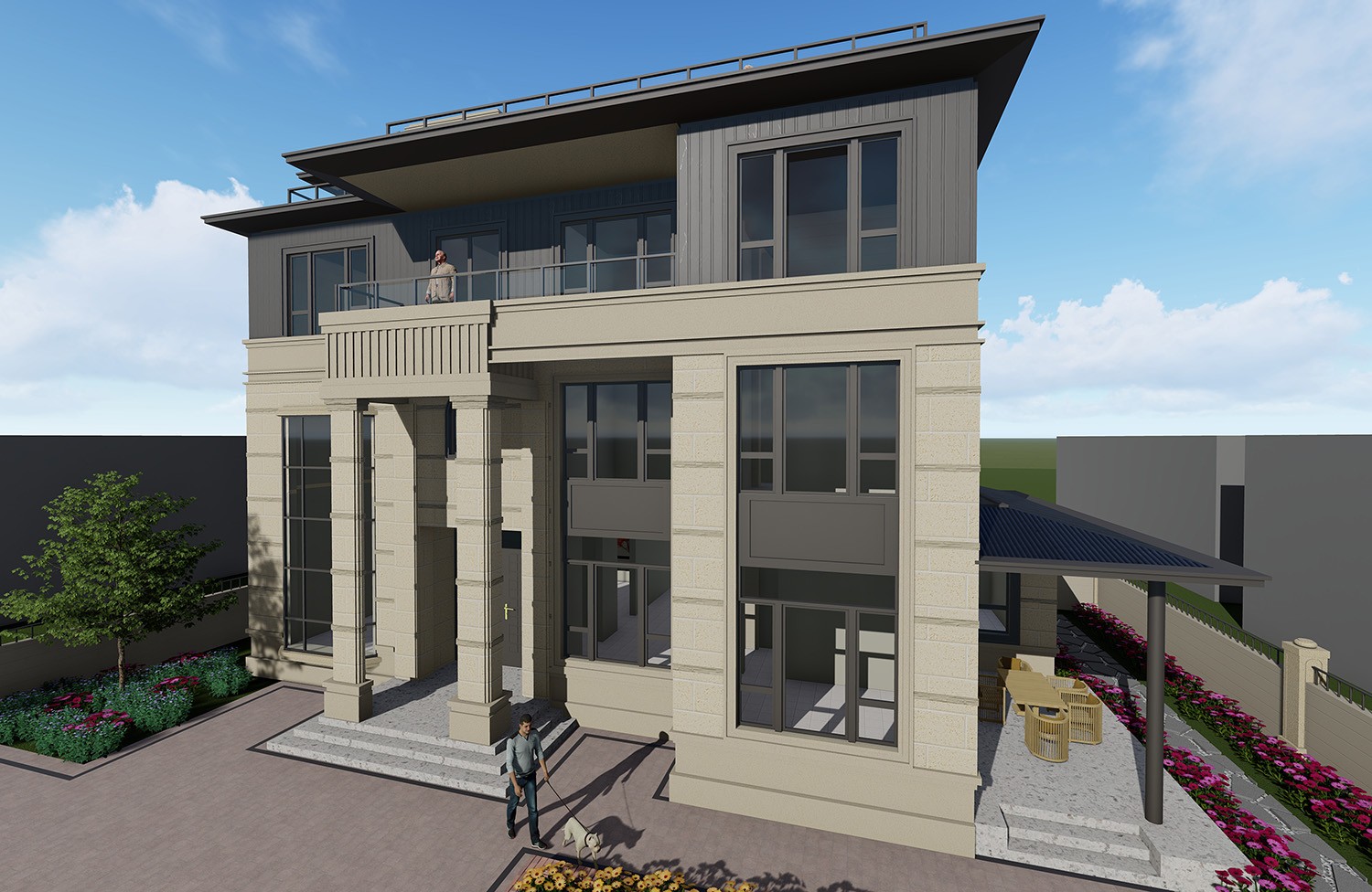 现代别墅十分重视功能和空间组织,注重发挥结构,构成本身的形式美。造型简洁,没有多余装饰