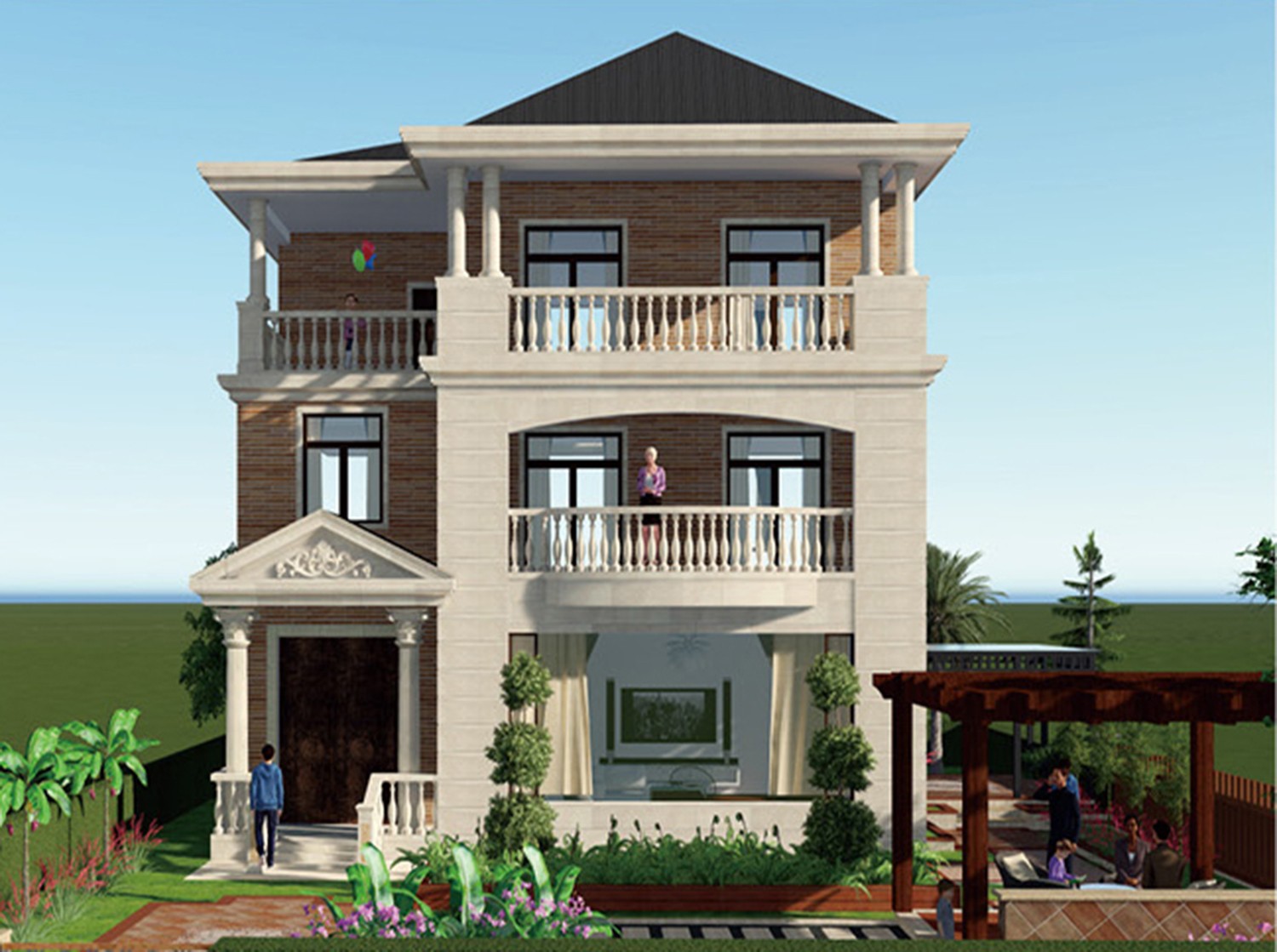 用户的福音,今天推荐的是三层小户型别墅设计方案,这款别墅是非常漂亮的欧式别墅,罗马柱和洁白的围栏非常