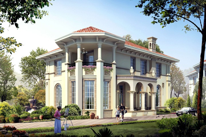今天推荐的别墅浑身上下透露出两个大字“豪华”!这款别墅集所有欧式别墅之所长,没有一丝违和感,橙色的瓦