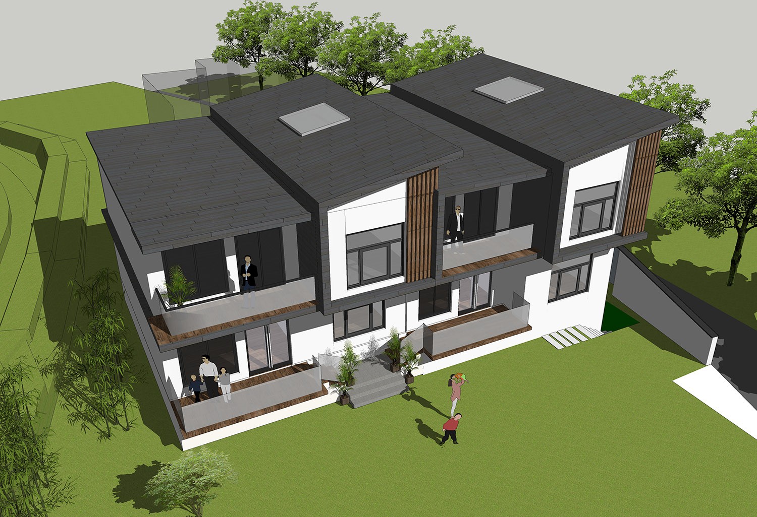 今天推荐二层半别墅设计,这是一款山东吕总私人订制的双拼别墅设计,这款别墅经典的米黄色真石漆和分割线有