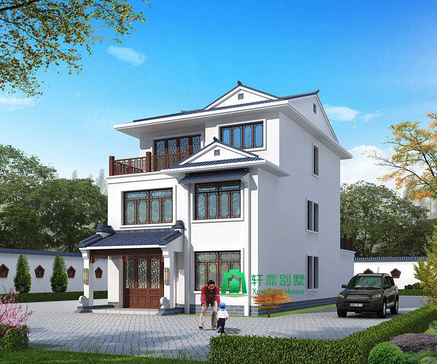 在农村什么最有面子!那就是建一栋别墅风风光光的。今天给大家推荐一款新中式别墅设计,这是一款青砖蓝瓦白