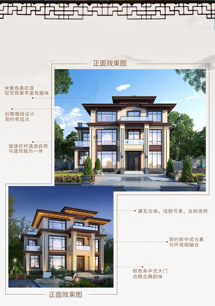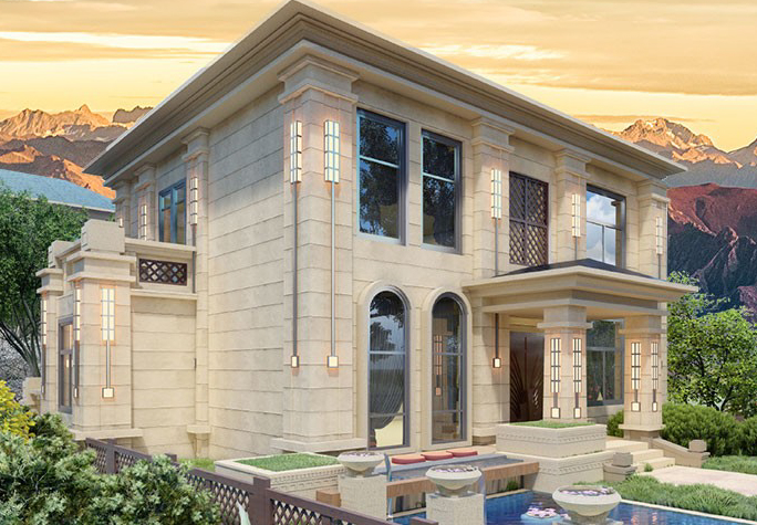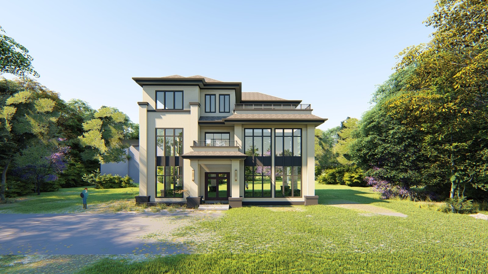 杨总此款两层别墅设计要建在重庆潼南老家,希望设计一款两层的新中式设计。村里太多的欧式自建房,想设计一