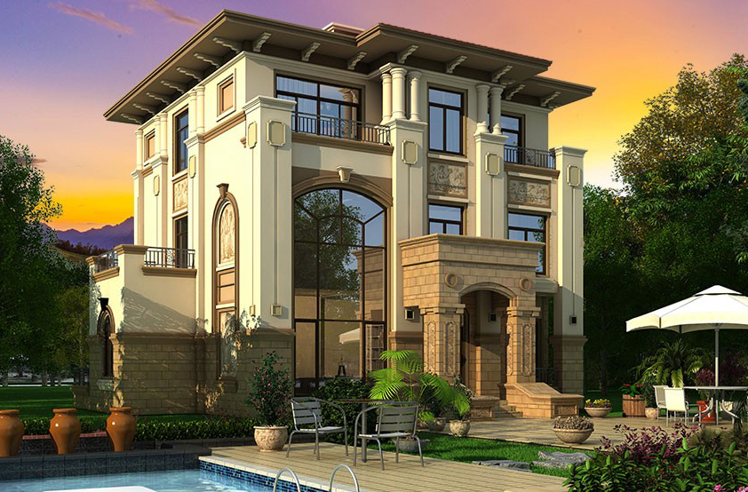高端欧式三层复式别墅设计图,奢华大气,给人一种十分贵气的感觉,因为外观十分精美,所以此款设计在装修上