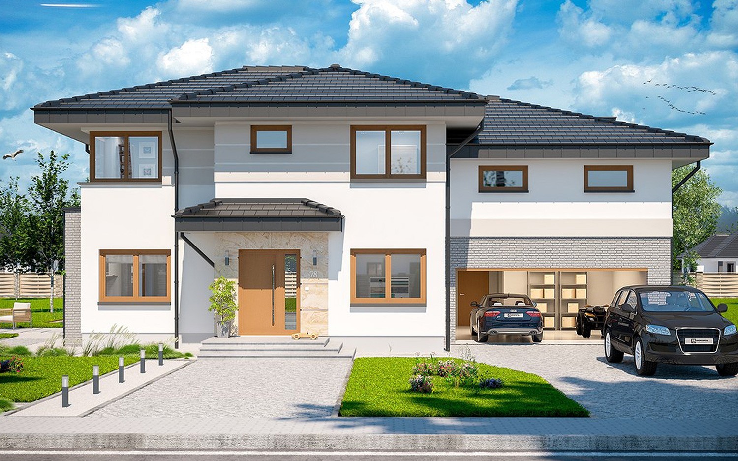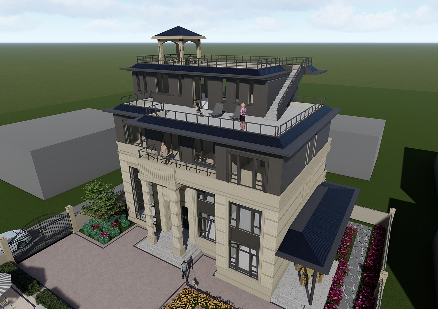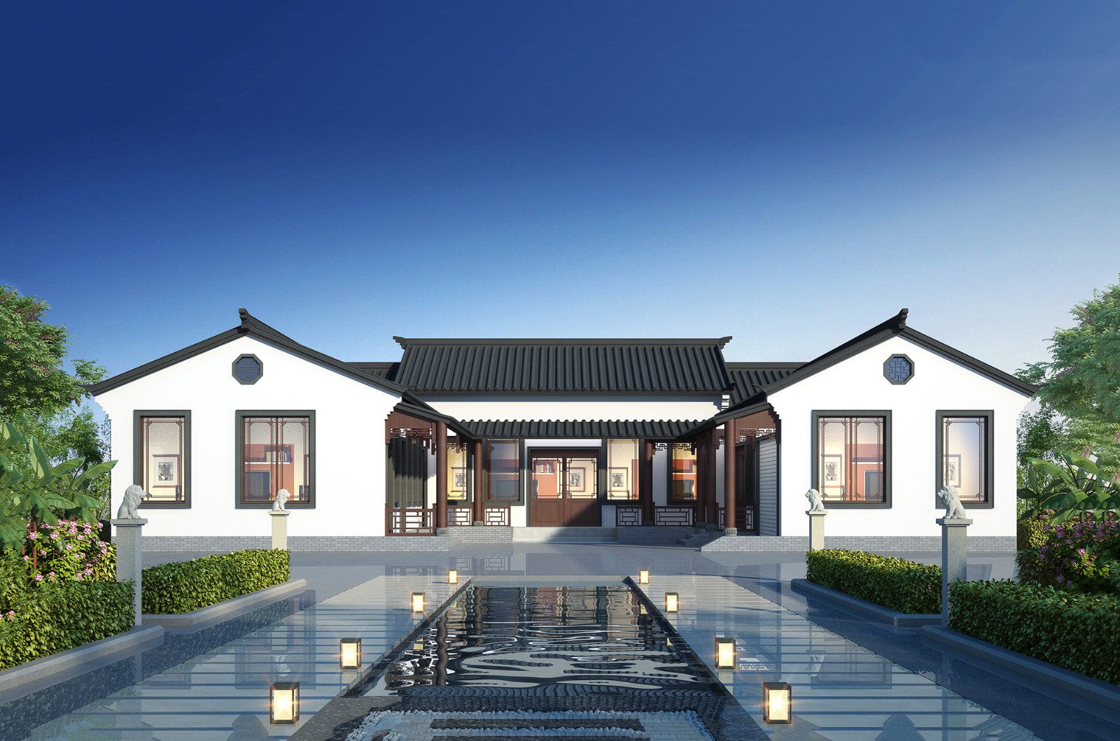 新中式别墅是在传统中式建筑的基础上改进的,本质上是和现代风格融合的建筑,保留中式韵味的同时又使其更贴