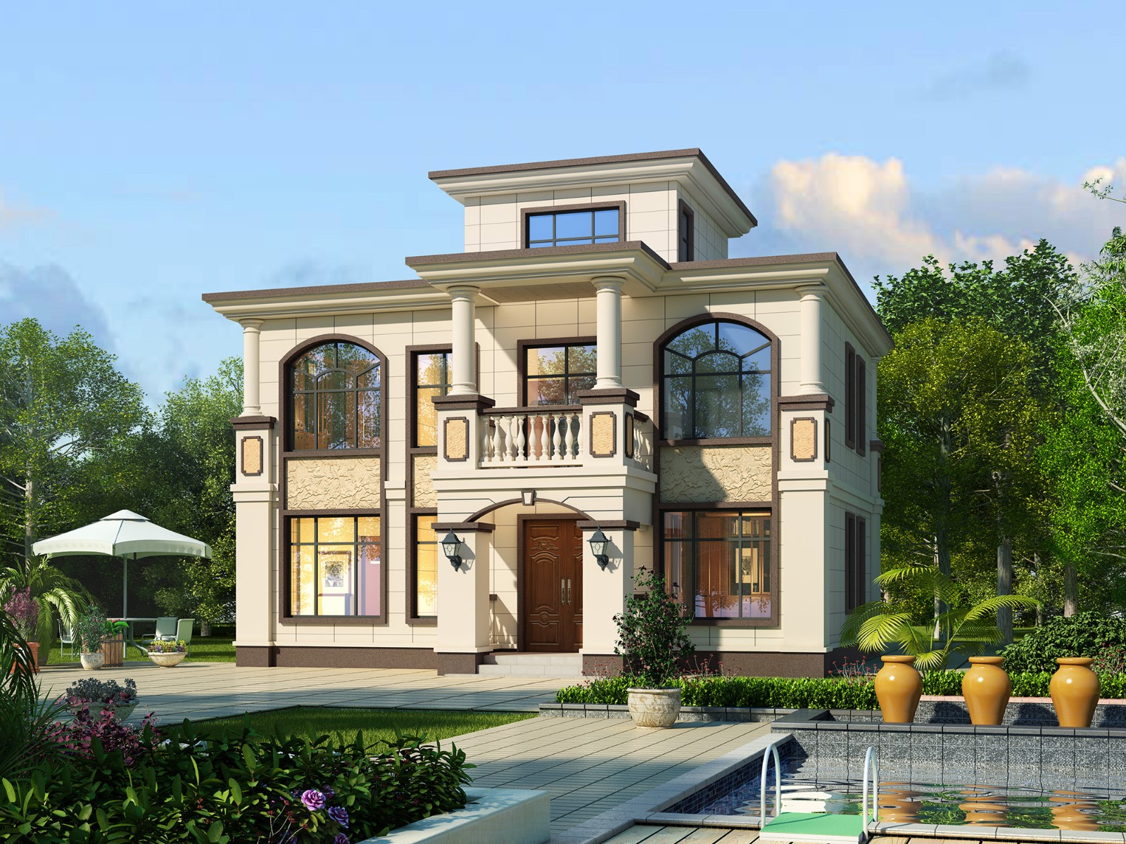 农村自建别墅必须符合农村的主体环境,我们农村人的要求就是住上方便舒适的别墅,农村最适合新中式和欧式田