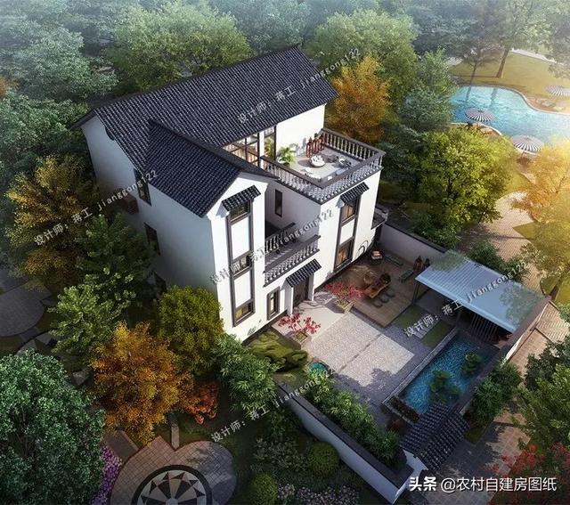 今天小编给大家推荐一款大气的新中式别墅。从户型上来看,非常的周正美观,外观色调偏古朴,有种世外桃源的