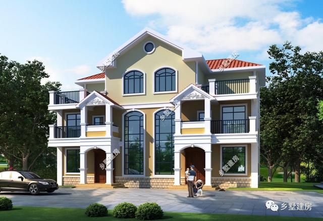 今天小编给大家推荐一款面宽不足十米的别墅,不论宅基大小一律能建别墅。这款别墅属经典的罗马柱造型搭,配