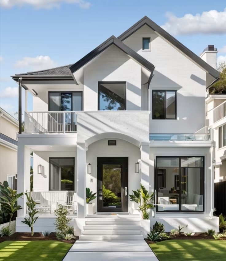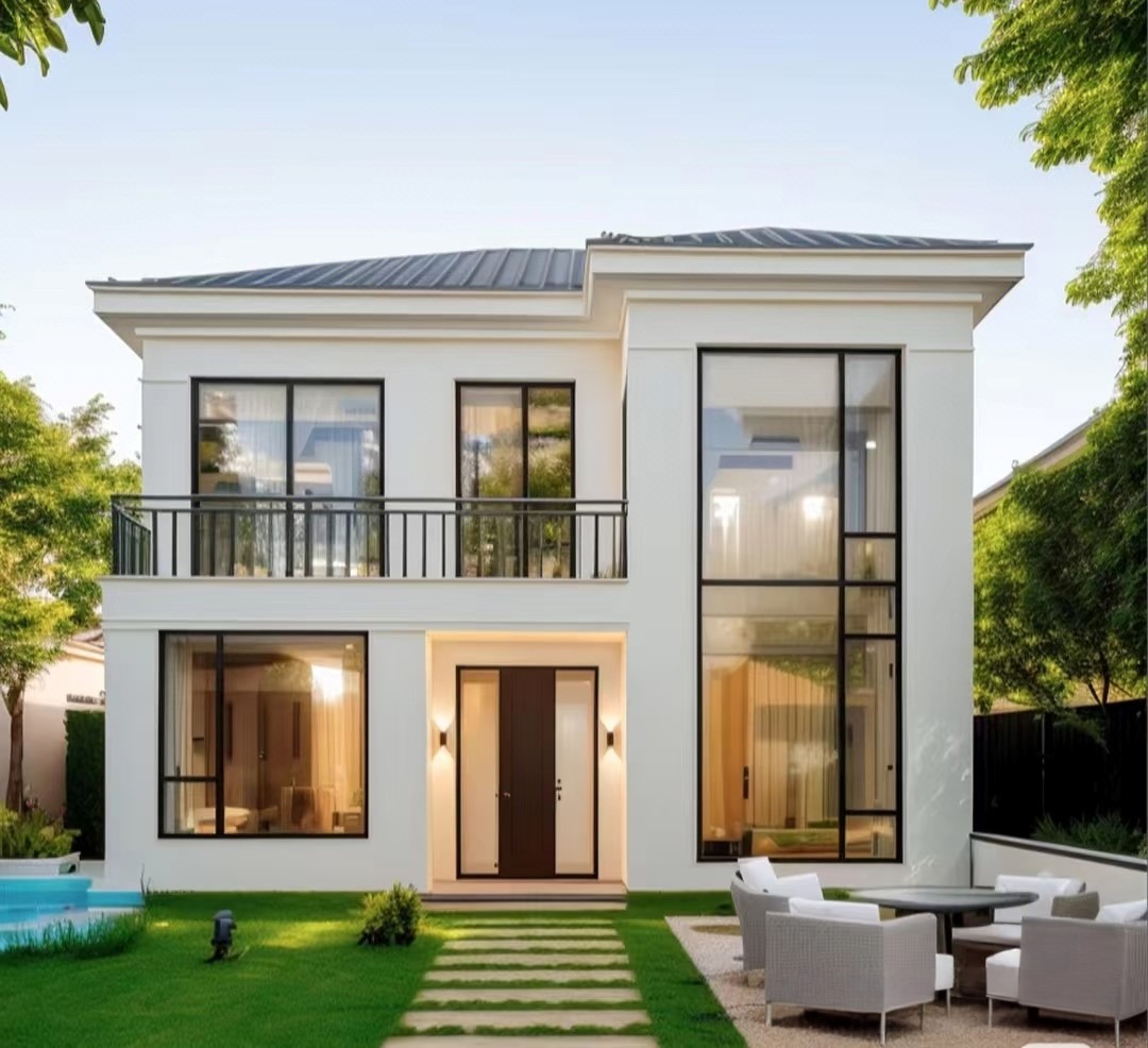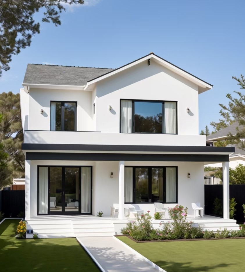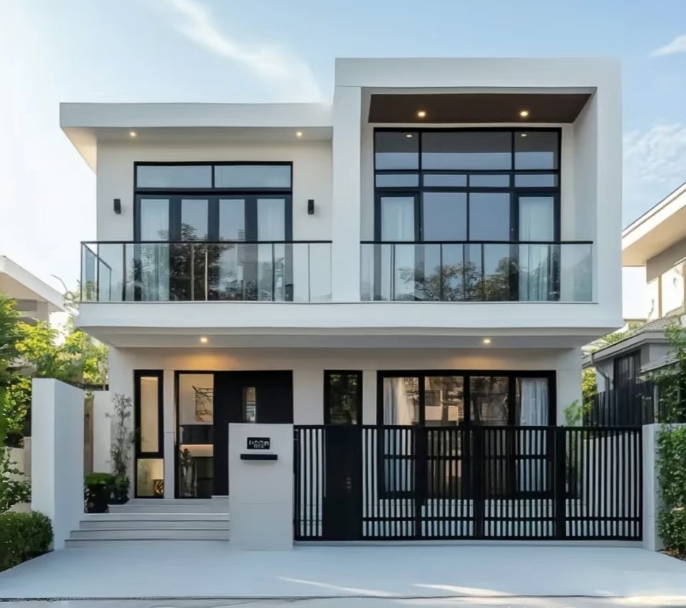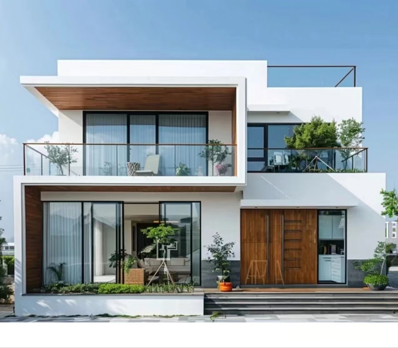 建筑是时代审美与生活方式的具象体现,现代简约风格鲜明。简洁的几何形体、纯净的白色立面搭配黑色窗框,利