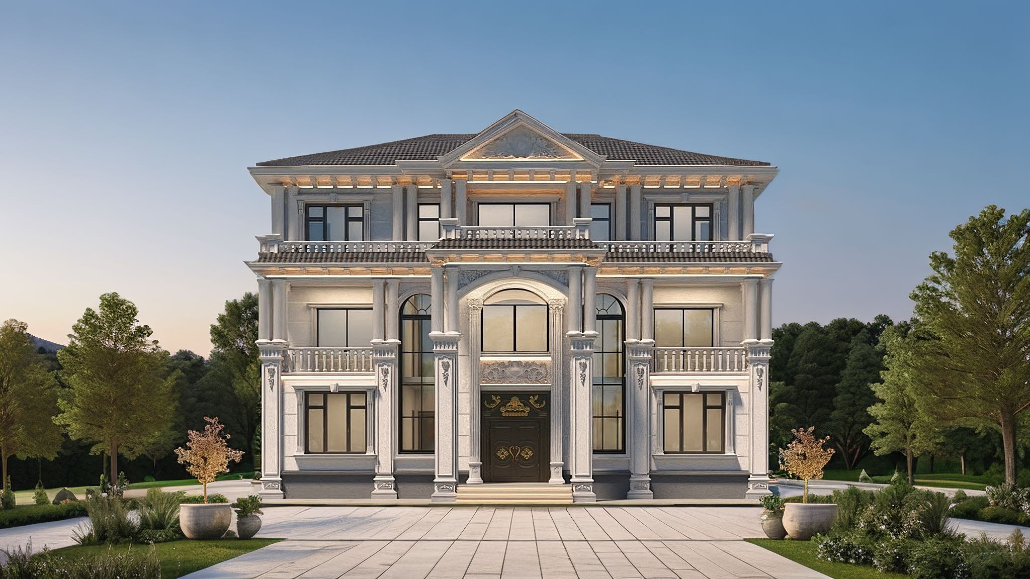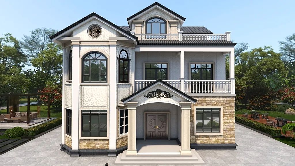农村自建三层别墅首选风格解析!法式典雅与田园自然双方案对比,打造舒适宜居乡村美宅。法式风格以对称布局