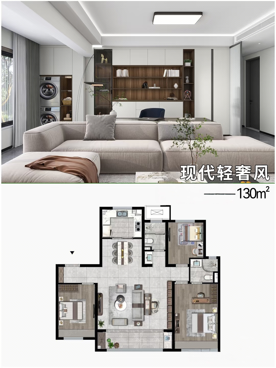 这套现代极简风格的房屋设计,完美地展现了简约与实用的完美结合。整体设计以白色为主色调,营