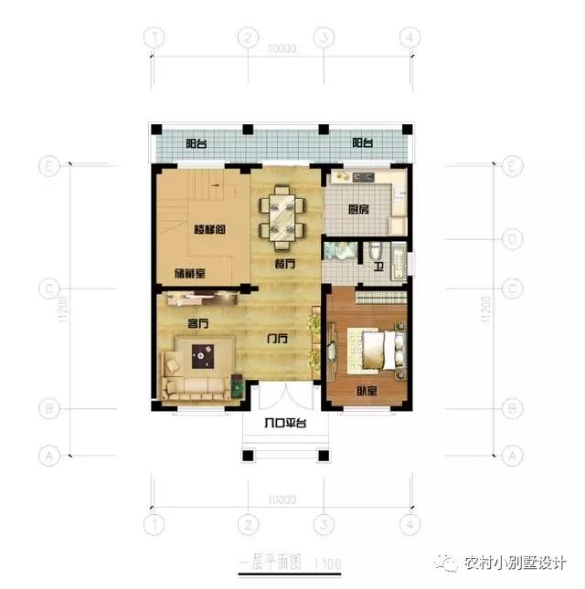 二层:设有三间卧室和起居室,与正面的阳台相连,采光较好