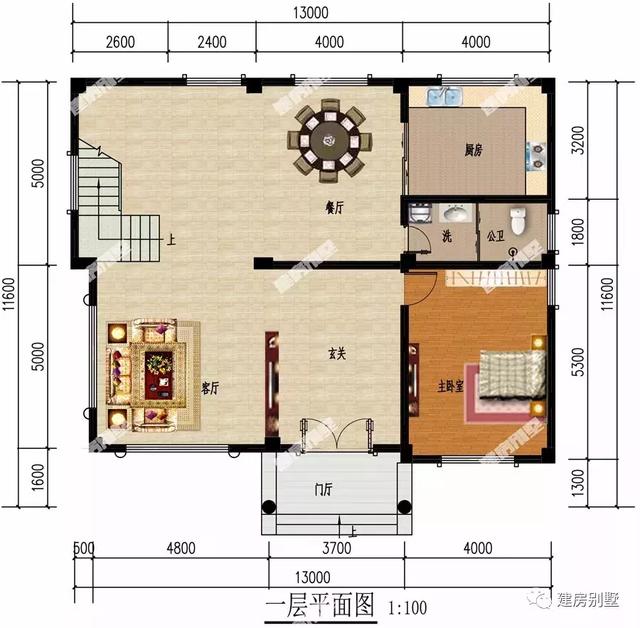 第一栋:13×9.1米,占地面积120.57平方米,建筑面积422.25平方米,框架结构,墙面用真石漆涂料装饰,屋面盖以蓝瓦。