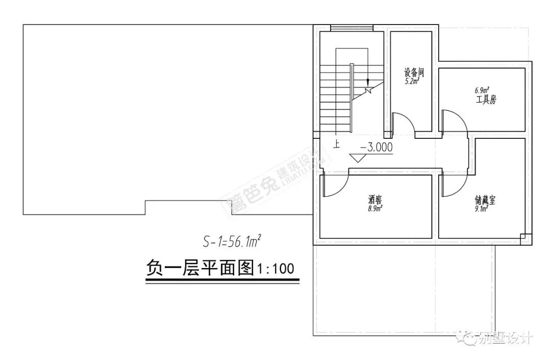 富层设计图:设有酒窖储藏室和工具设备间,非常方便,功能用途多,平时的工具都可以放到其中