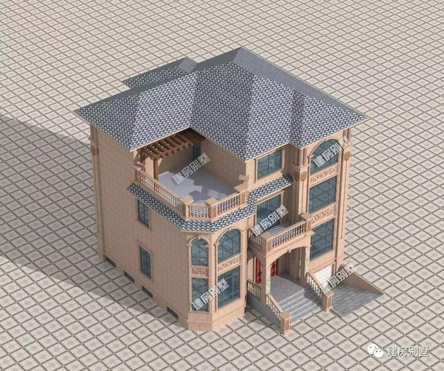 别墅的造型自然是美观大气的,墙面装饰上用到的主要是仿大理石的真石漆涂料,无论是颜色选择上还是材料搭配,都是既经济效果又好,搭配一些浮雕辅助性装饰,屋面盖以蓝色琉璃瓦。