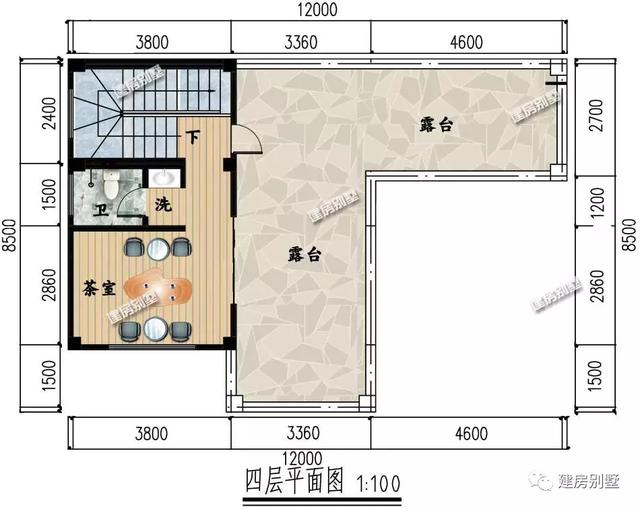 四层:一间休闲茶室,一个较大的露台。