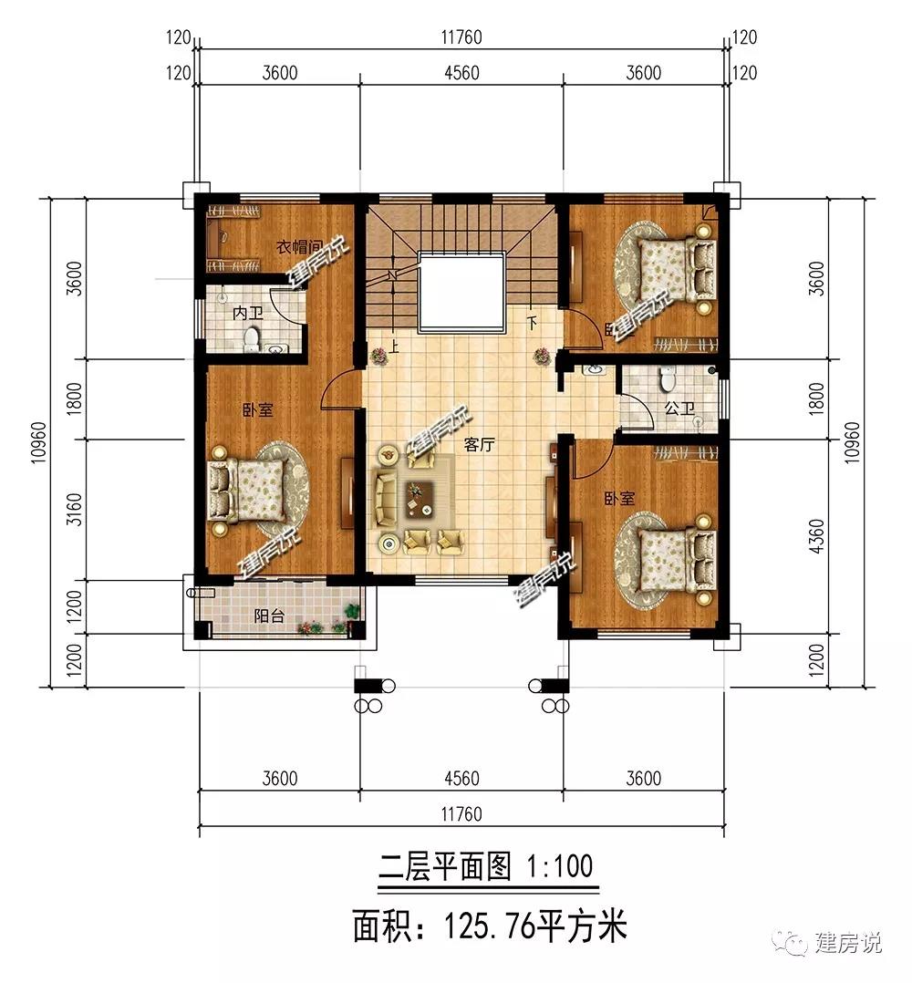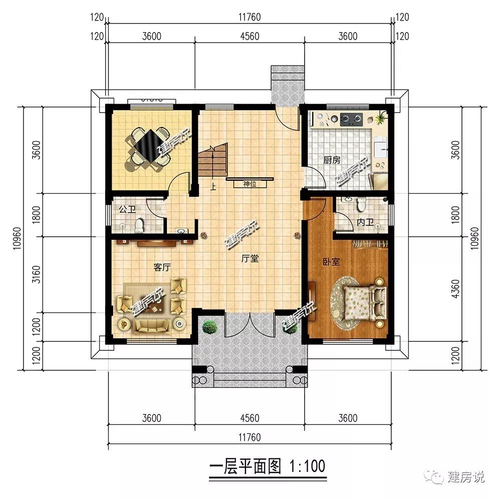 开间11.76米,进深10.96米