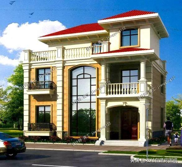 很精致的一款欧式三层别墅,占地面积在100个平方以内,符合所有农村地区宅基地建房要求。落地式大窗,保证室内良好的采光和通风,坐在客厅乡村田园风光尽在眼前。