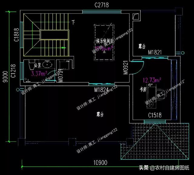 二层设计有二间卧室和一间棋牌室,其中主卧室带有衣帽间和卫生间,另个还有一个起居室;三层书房、卫生间和娱乐休闲区,两个大的屋顶露台,美观又实用。