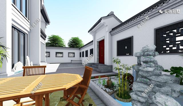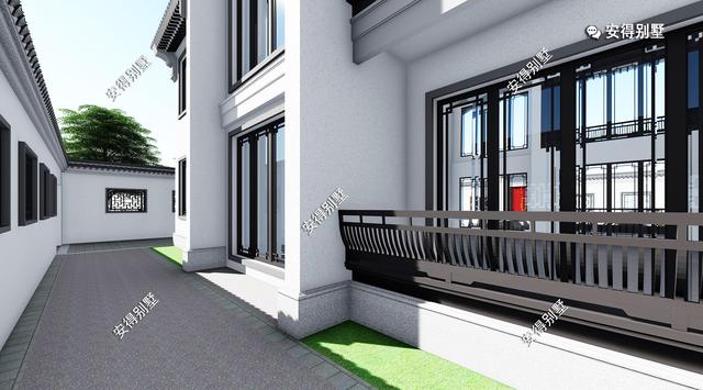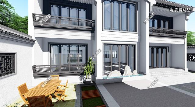 白墙灰瓦的经典中式别墅,结合现代的设计手法,搭配绿化美景,更显别墅的气质。