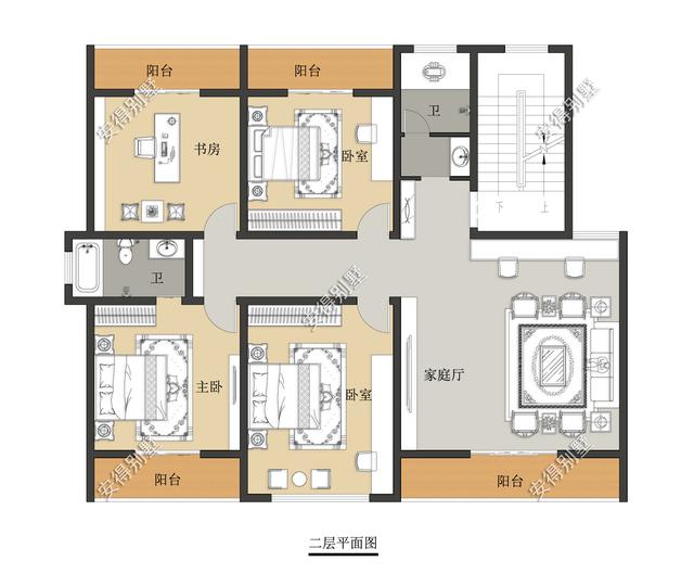 6x6m大家庭厅,4间卧室,均配有阳台,舒适性很高。
