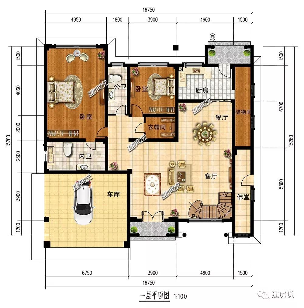 一层:入门是宽敞客厅,居住舒适舒心;设有独立的车库,生活便利;厨房与餐厅相连,用餐便利;设有储物间,可以放置杂物等不常用物件。