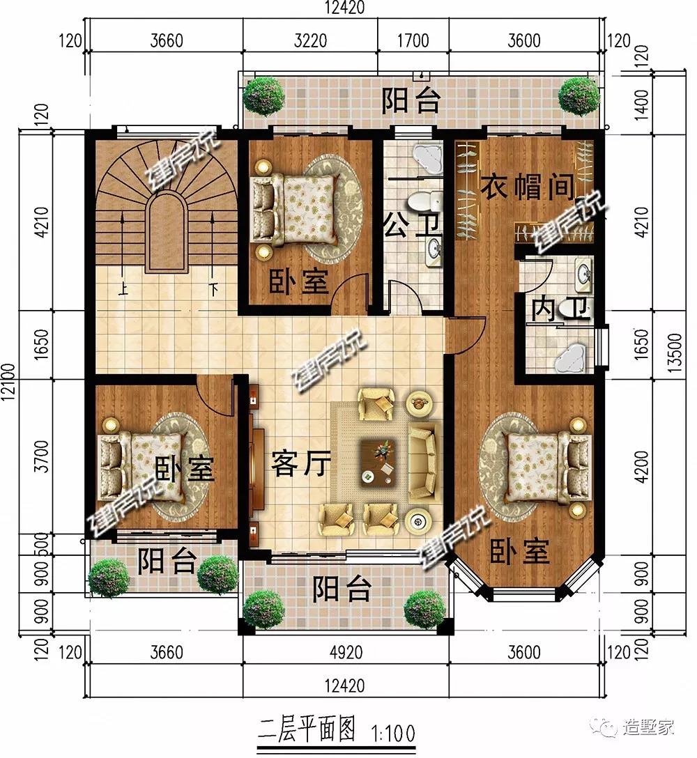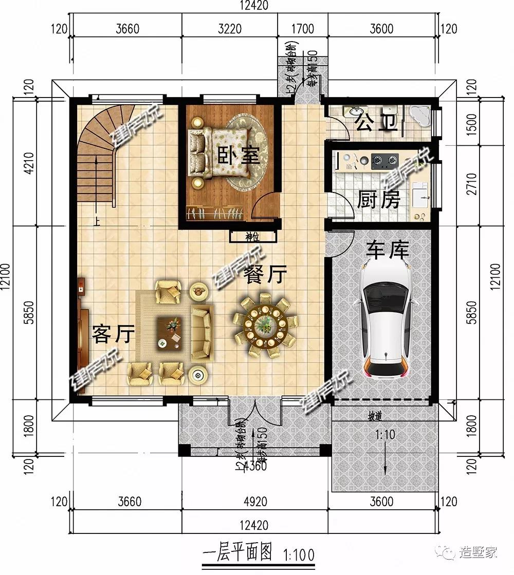 开间12.42米,进深12.1米
