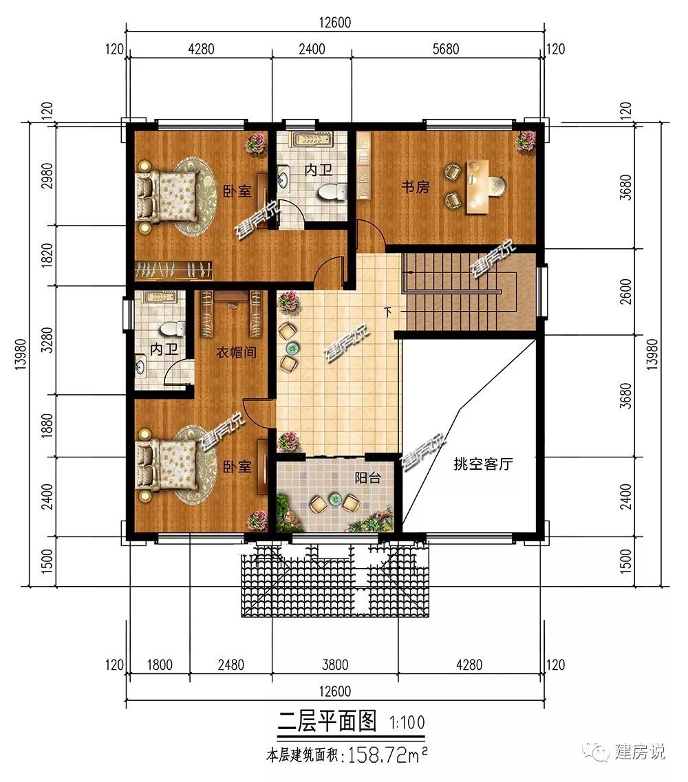 开间12.6米,进深13.98米