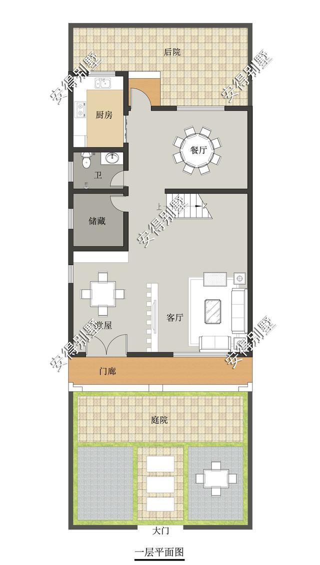 本栋别墅主体占地面积为:111.2㎡,开间为:8米,进深为13.9米,前后各留有庭院,共2层,总建筑面积为:200.35㎡。