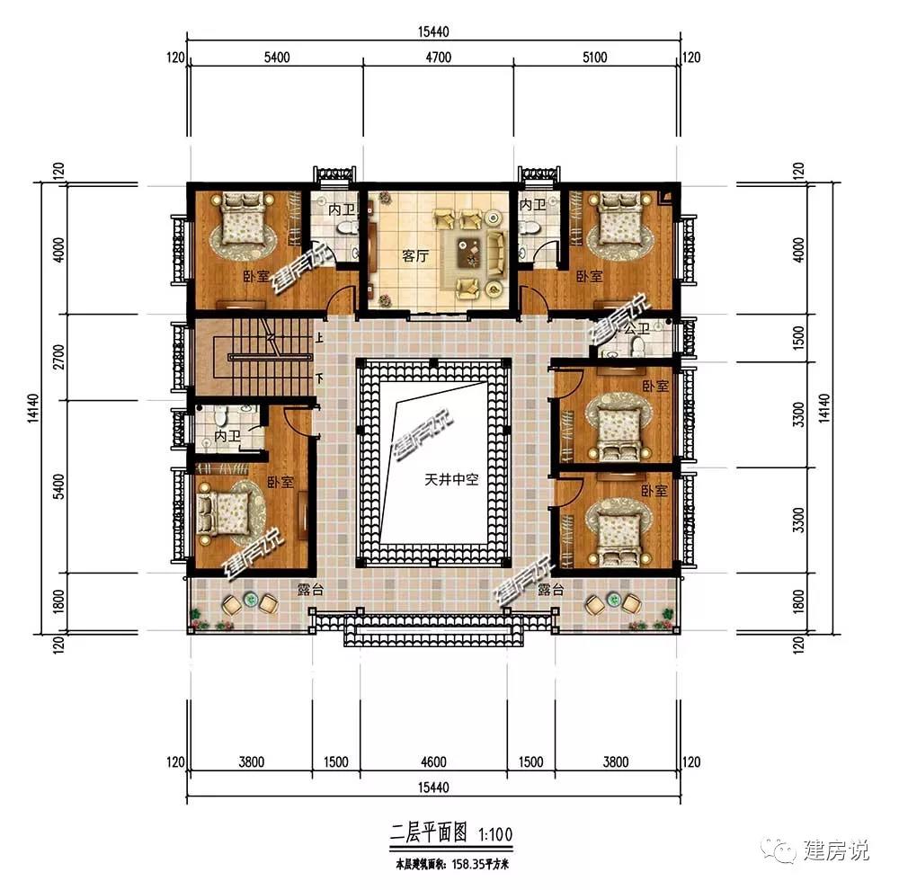 二层:卧室设置充裕,接待亲朋好友无忧;客厅便于家人之间联络感情;露台面积宽敞,观景晾晒两不误。