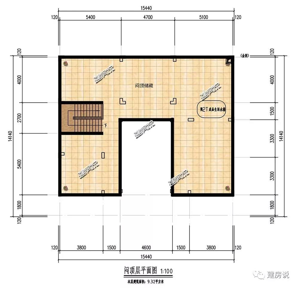闷顶层:储物空间充裕,生活井井有条;成品水箱位的设置,便于生活用水的储存。