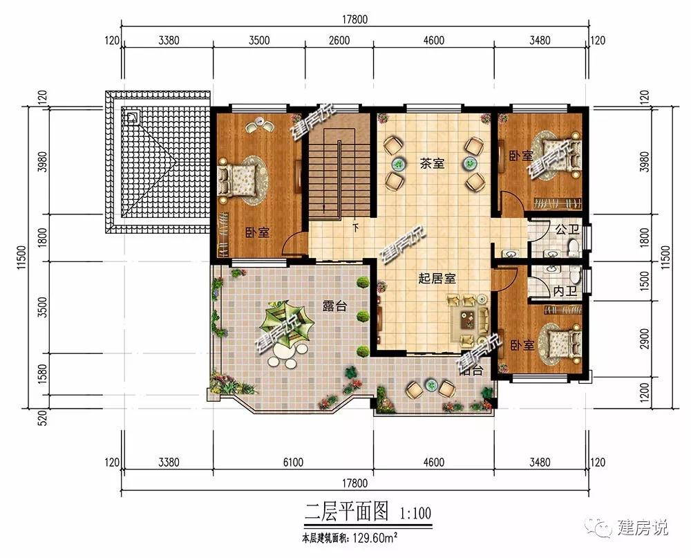 二层:设有3间卧室,可供客人来访;宽敞露台可供晾晒衣物,种种花草,增添美景;设有茶室,品茶享受美好时光。