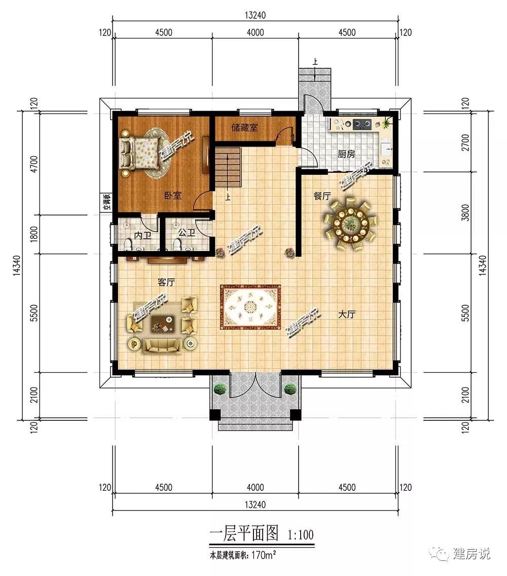 开间13.42米,进深14.34米