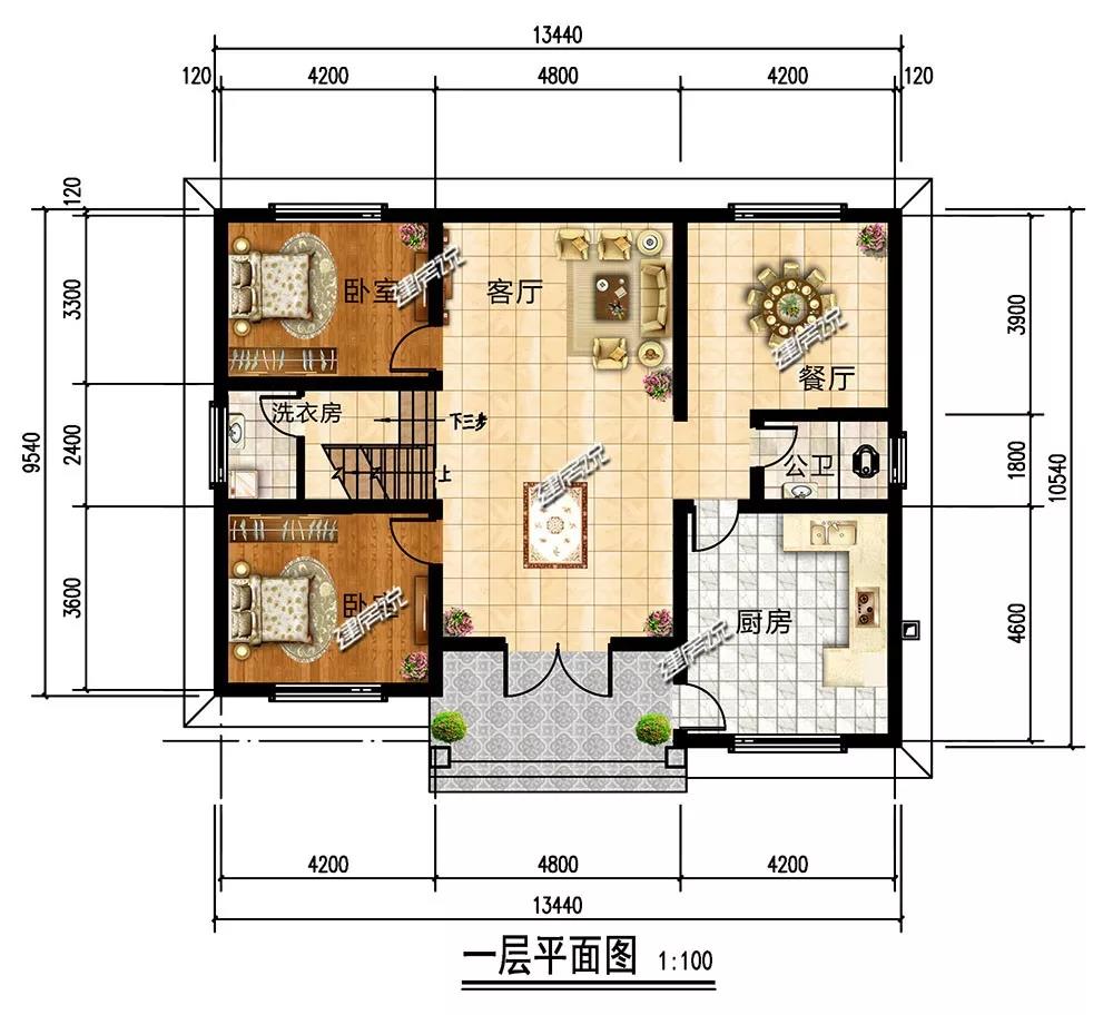 开间13.44米,进深10.54米