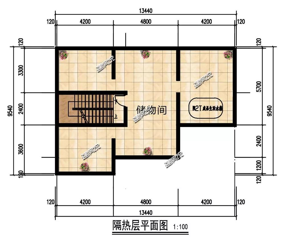 三层:储物间面积宽敞,便于日常杂物的存放;水箱位的设置,便于日常生活用水的储存。