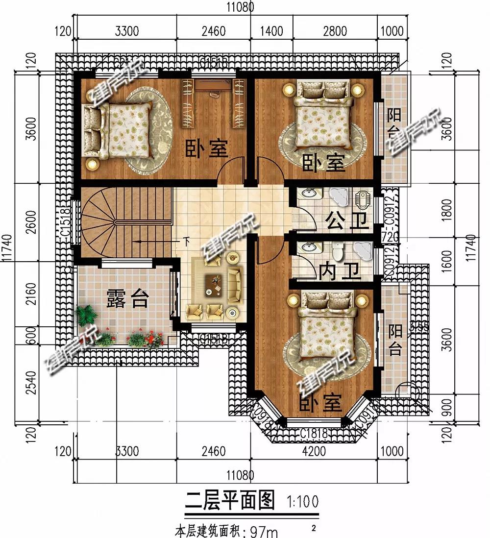 二层:设有3个卧室,主次分明;客厅和露台相连,环境安静又舒适。