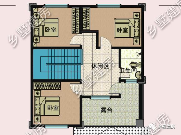 三层设计了三间卧室,一个公卫,一个露台。
