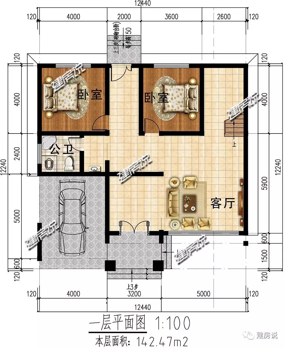 开间12.44米,进深12.24米