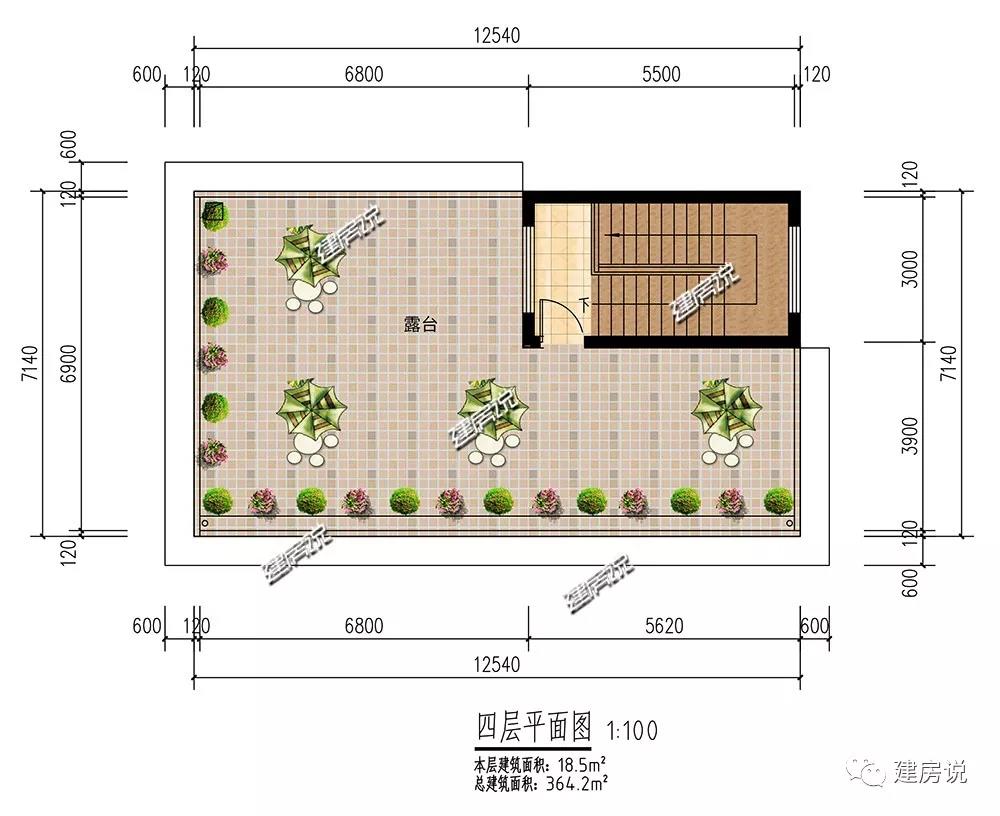 四层:超大露台,便于大件的晾晒、观景、日光浴等。