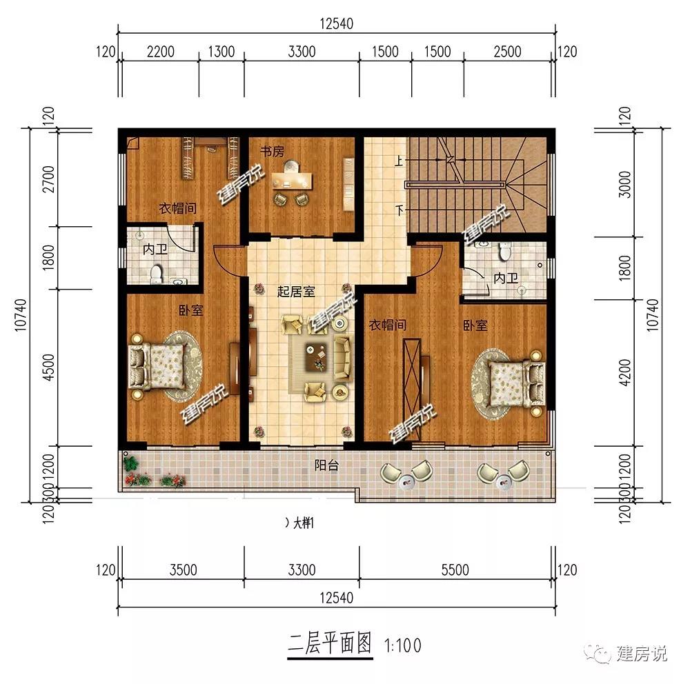 二层:2卧室,2内卫;衣帽间让整间房都整齐有序;书房提供良好的学习工作环境;1起居室,便于家人交流感情等。