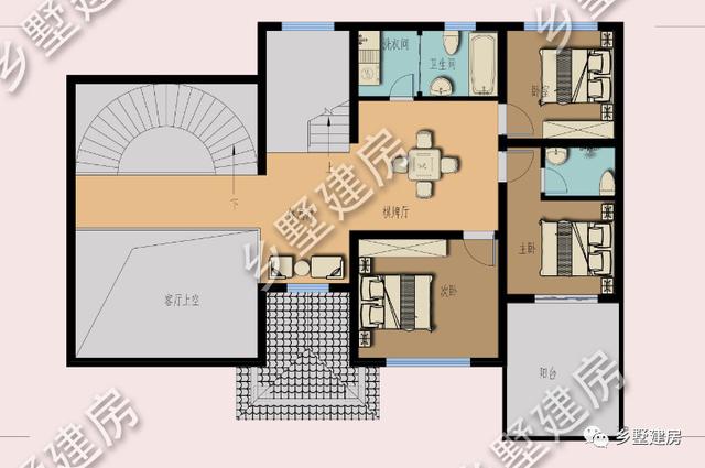 二层:设计了三间卧室,一间棋牌室,公卫,小阳台。