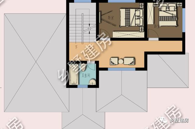 三层:设计两间卧室,一个干湿分离卫生间,一个起居室。