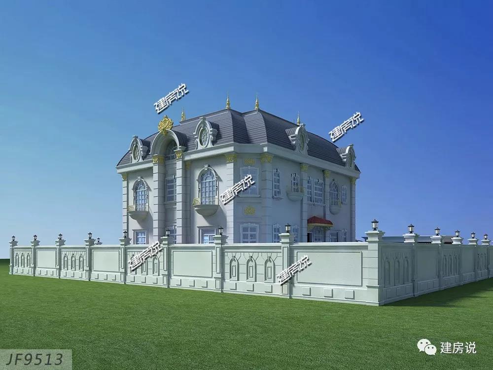 别墅外墙主体以白色真石漆装饰,蓝色瓦,整体造型豪宅既视感爆棚,外观宏伟大气宛如城堡。