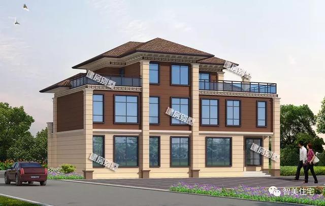 5开间设计的大别墅,19.3×11.21米建房尺寸,外观装饰就用到黄色和棕色两种颜色的真石漆,但是搭配起来很诙谐。别墅的占地面积为217.76平方米,建筑面积536.16平方米,="://www.lemeizhai.com/PictureShow.asp?PicID=1171&PicClassID=91" target="_self" title="框架结构">框架结构,造型有多气派,大家感受一下就知道了。